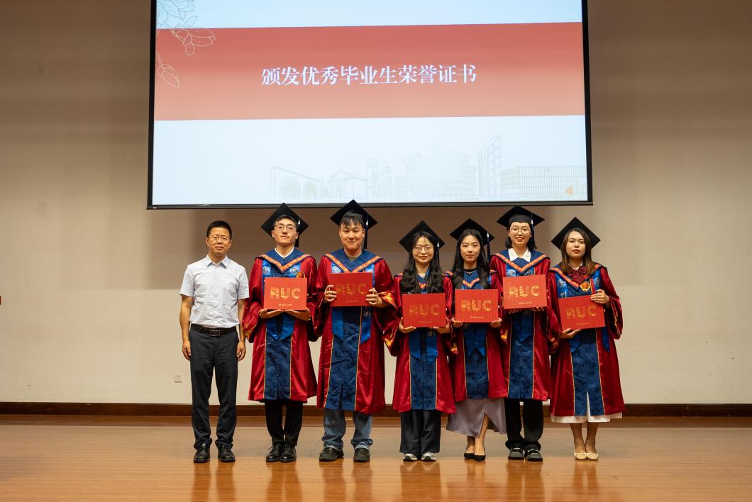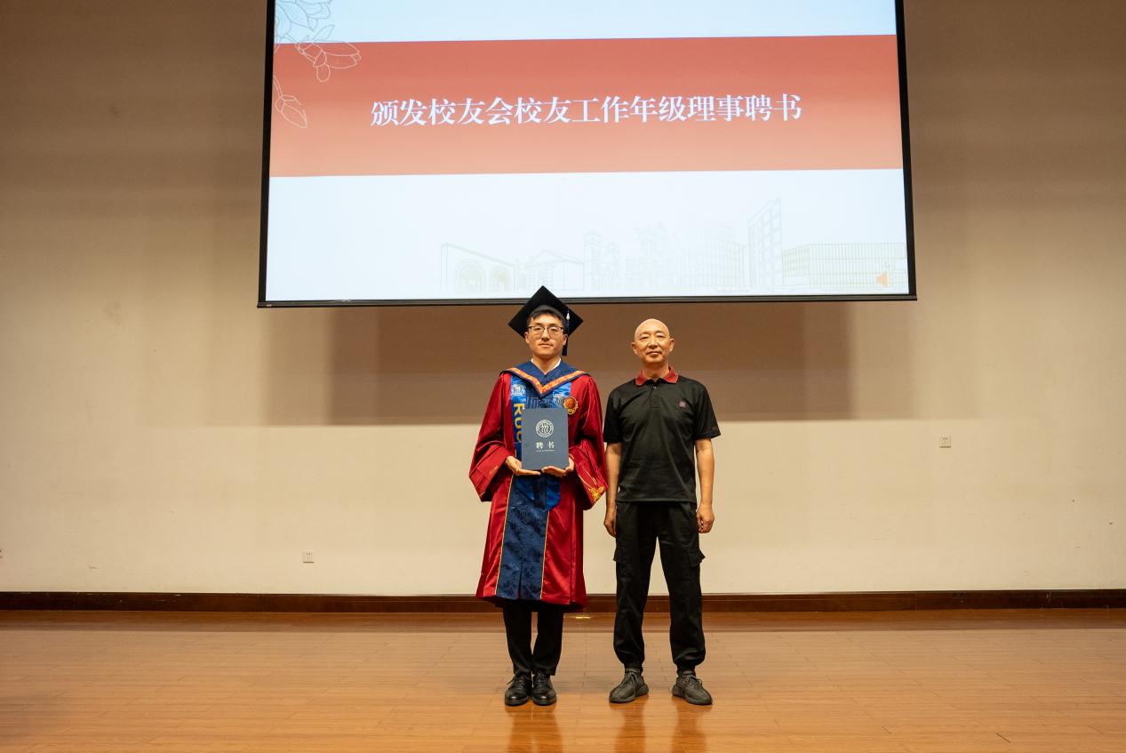 在发言环节结束后,欢送会进入颁发优秀毕业生荣誉证书环节。田传锋书记、王建华院长、王钰副书记分别为北京市优秀毕业生、明星黑料 校级优秀毕业生、明星黑料 院级优秀毕业生颁发荣誉证书,盛希文副院长上台颁发校友会校友工作年级理事聘书。