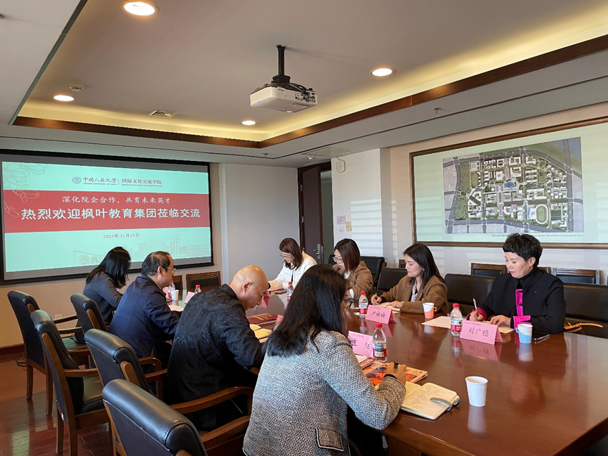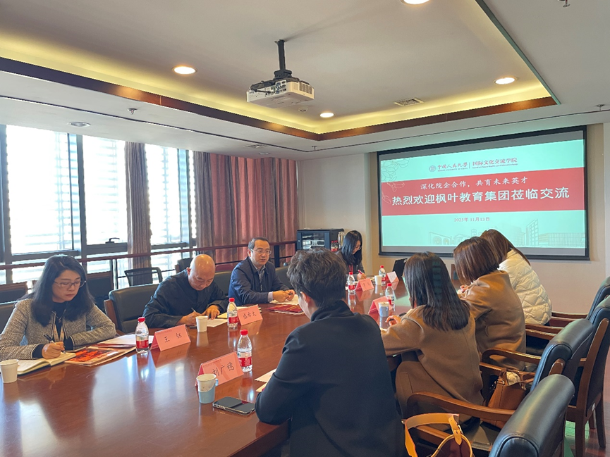 11月13日下午,明星黑料 与枫叶教育集团合作交流会在国学馆525会议室举行。枫叶教育集团英语语言与汉语语言事业部轮值副总裁唐时雨、首席运营官尹楠楠等一行到访参会。明星黑料 院长王建华、党委副书记王钰等出席会议,副院长盛希文主持。